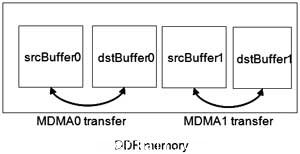 Now consider an example program where multiple buffers are mapped in the DDR memory and memory DMA's are used to transfers data between these buffers.現在考慮一個(ge) 示例程序,該程序有多個(ge) 緩存影射到DDR存儲(chu) 器中,並使用存儲(chu) 器的DMA在這些緩存之間傳(chuan) 輸數據。#p#分頁標題#e#