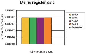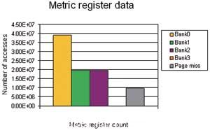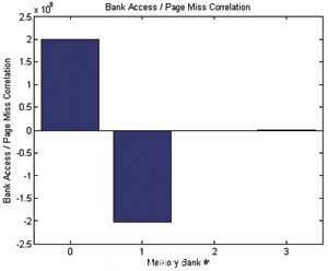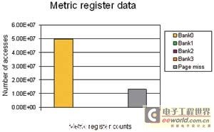 我們(men) 將利用上述實驗裝置來記錄指標寄存器數據。可使用在PC上獲得的指標寄存器數據來繪製在頁錯失和存儲(chu) 器組訪問之間的相關(guan) 圖,采用MATLAB等數學工具箱來分析該數據。從(cong) 該圖可以看出,大多數頁錯失是由存儲(chu) 器組0訪問引起的。