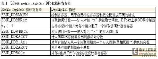 在典型的實際應用中有多種資源,如內(nei) 核處理器、外設DMA,以及可同時訪問外部存儲(chu) 器和幾個(ge) 係統總線的MDMA(存儲(chu) 器到存儲(chu) 器的DMA)。性能指標寄存器提供了一種捕捉外部存儲(chu) 器組訪問數、頁錯失數、總線流量數和總線轉向數的方式,有效地利用從(cong) 這些寄存器獲得的數據可顯著提高係統的資源利用率。