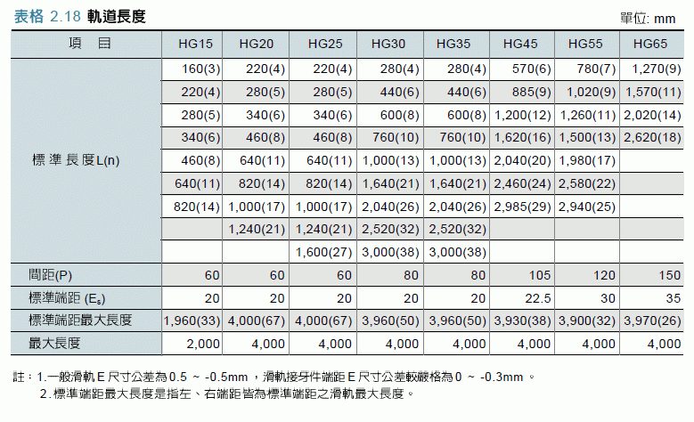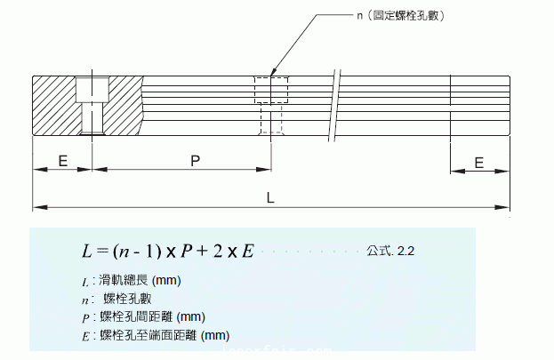 煙台同升科技發展有限公司備有滑軌標準長度庫存供應客戶需求。假如客戶訂購非標準長度滑軌時,端麵距離E的尺寸最好不要大於(yu) 1/2P,防止因E的尺寸過大導致滑軌裝配後端部的不穩定,而降低線性滑軌的精度,亦不可取用過小的E值(小於(yu) E)以避免螺栓孔破孔.#p#分頁標題#e#