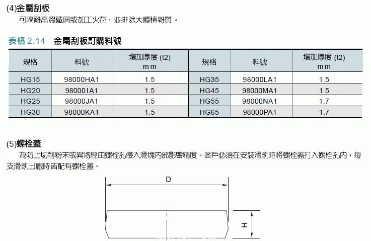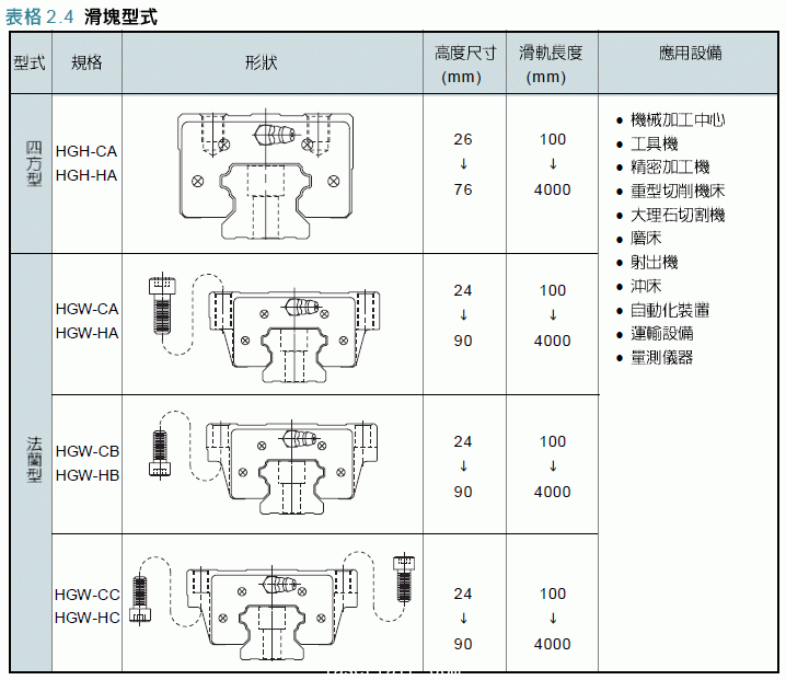 HG係列分為(wei) 非互換性及互換性型兩(liang) 種線性滑軌,兩(liang) 者規格尺寸相同,主要差異點在於(yu) 互換性型之滑塊、滑軌可單出互換使用,較便利,但其組合精度無法達到非互換性型之超高精度,不過由於(yu) 煙台同升科技發展有限公司在製造上有良好的尺寸控製及價(jia) 格的品質要求,互換性型之組合精度目前已達到一定的水準,對不需配對安裝線性滑軌的客戶而言,是一項很好的選擇。而在此過程中,不同的線性滑軌產(chan) 品規格型號,用來標明不同的線性滑軌的型式、尺寸、精度等級以及預算等,這樣對訂貨時雙方對產(chan) 品的確認有很大的幫助。