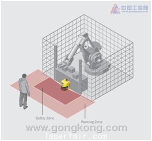 有兩(liang) 個(ge) 自定義(yi) 的區域類型:安全區(也稱保護區);警戒區(也稱預警區)。如果有人進入警戒區,激光掃描儀(yi) 會(hui) 輸出聽覺或視覺的報警信號。如果有人在安全區進行違規操作,則掃描儀(yi) 會(hui) 自動開啟安全保護、緊急停機程序。