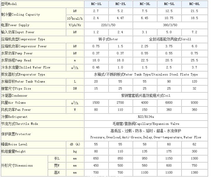 工業(ye) 激光冷水機技術參數Laser Chiller Specifications