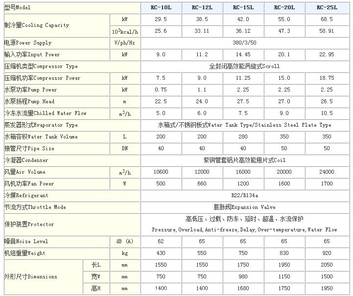 1、以上製冷量基於(yu) 環境溫度35℃、進水溫度12℃、出水溫度7℃。