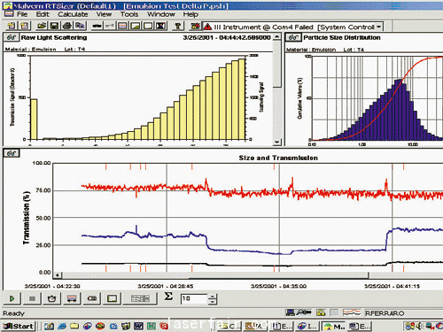 LPS液滴大小檢測方法的工作原理是激光衍射。被檢測的原材料連續地流經檢測區域。被檢測的固體(ti) 顆粒或者液滴產(chan) 生一定的散射條紋和衍射條紋。檢測儀(yi) 器對這些條紋進行檢測分析,並據此計算出顆粒或者液滴的大小。