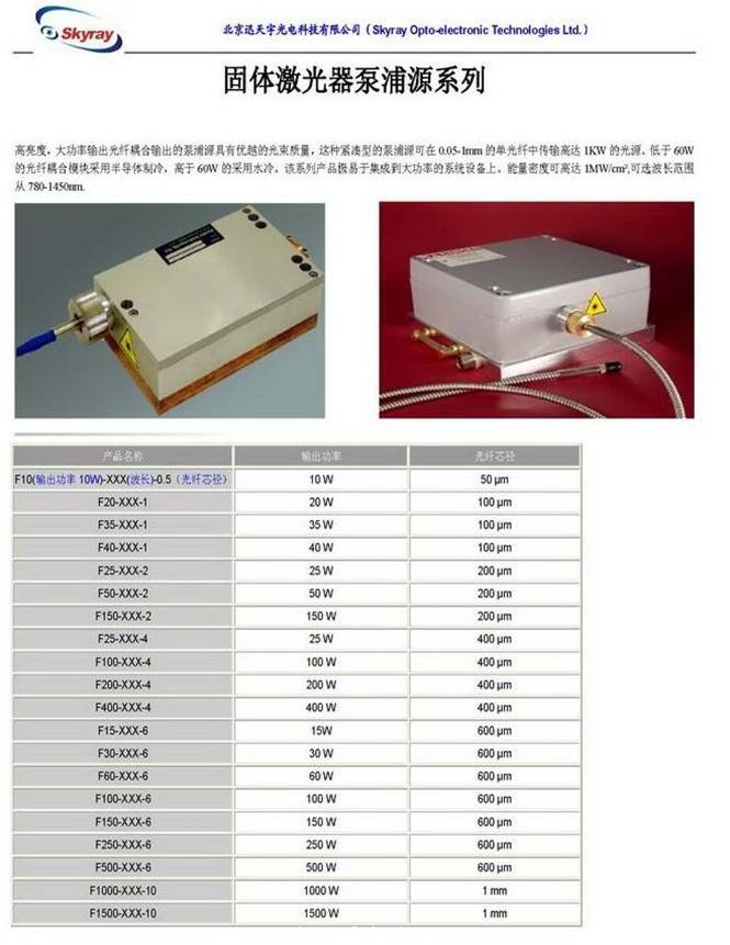 固體(ti) 激光器泵浦源係列,可提供高亮度、大功率光纖耦合輸出優(you) 越的光束,這種緊湊型的泵浦源可在0.05-1mm的單光纖中傳(chuan) 輸高達1KW的光,能量密度可高達1MW/CM2,可選波長範...