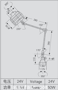 用途: JC50C光源采用 鹵鎢燈泡 ,聚光封閉,有五個(ge) 活動部位組合的工作燈,並具有防水、 防侵蝕等優(you) 點,適用於(yu) 各種大、小數控機床,組合機床,加工中心及普通機床的照明...