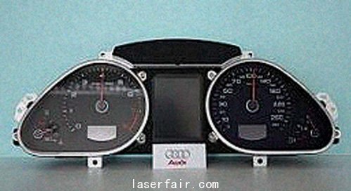 圖5:用有機玻璃為(wei) 奧迪A6製造的儀(yi) 表盤窗口,左圖沒有鍍膜,右圖鍍有防反射膜。