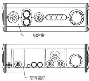 TLG 型帶塑料隔條,可隨意移動調節位置,進行多種分隔,見右圖。如果電纜規格多,可選用此經濟的裝置。