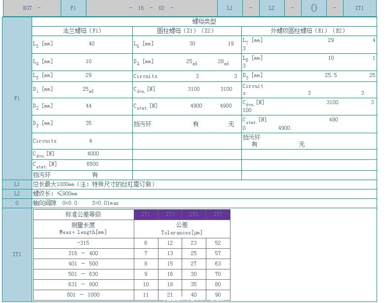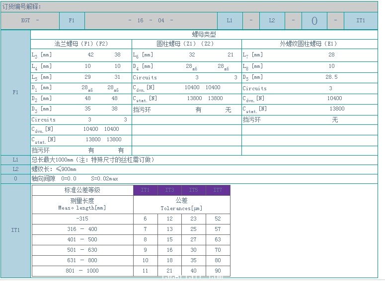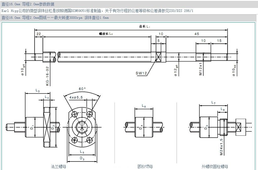 公稱16mm係列微型絲(si) 杠 直徑16.0mm 導程2.0mm參數數據 Karl Hipp公司的微型滾珠絲(si) 杠是按照德國DIN69051標準製造,關(guan) 於(yu) 有效行程的公差等級和公差請參見ISO/DIS 286/1 直徑...