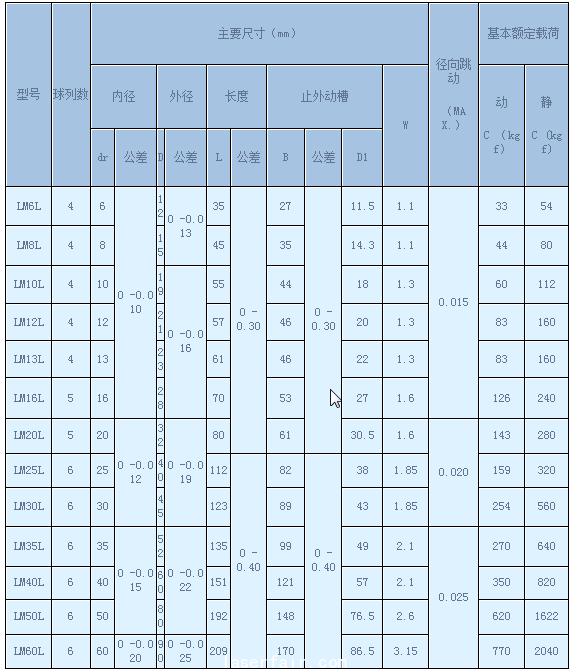 LM-L直線軸承係列 LM...L直線軸承係列