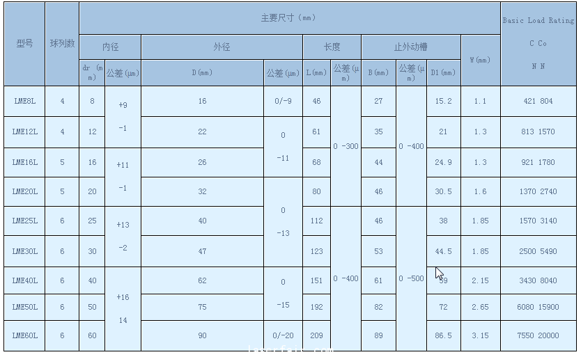 LME-L 直線軸承係列 LME...L 直線軸承係列