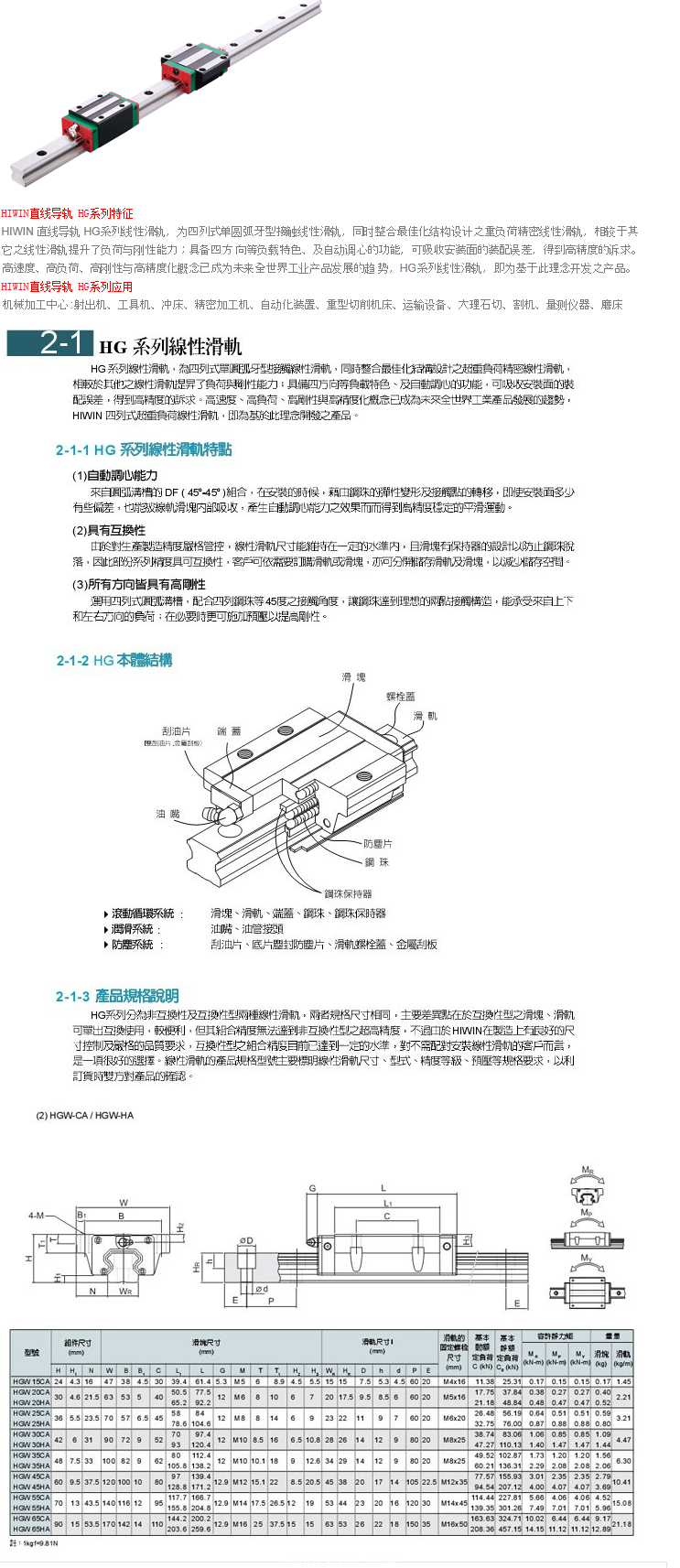 直線導軌 / HIWIN直線導軌-HG係列線性滑軌