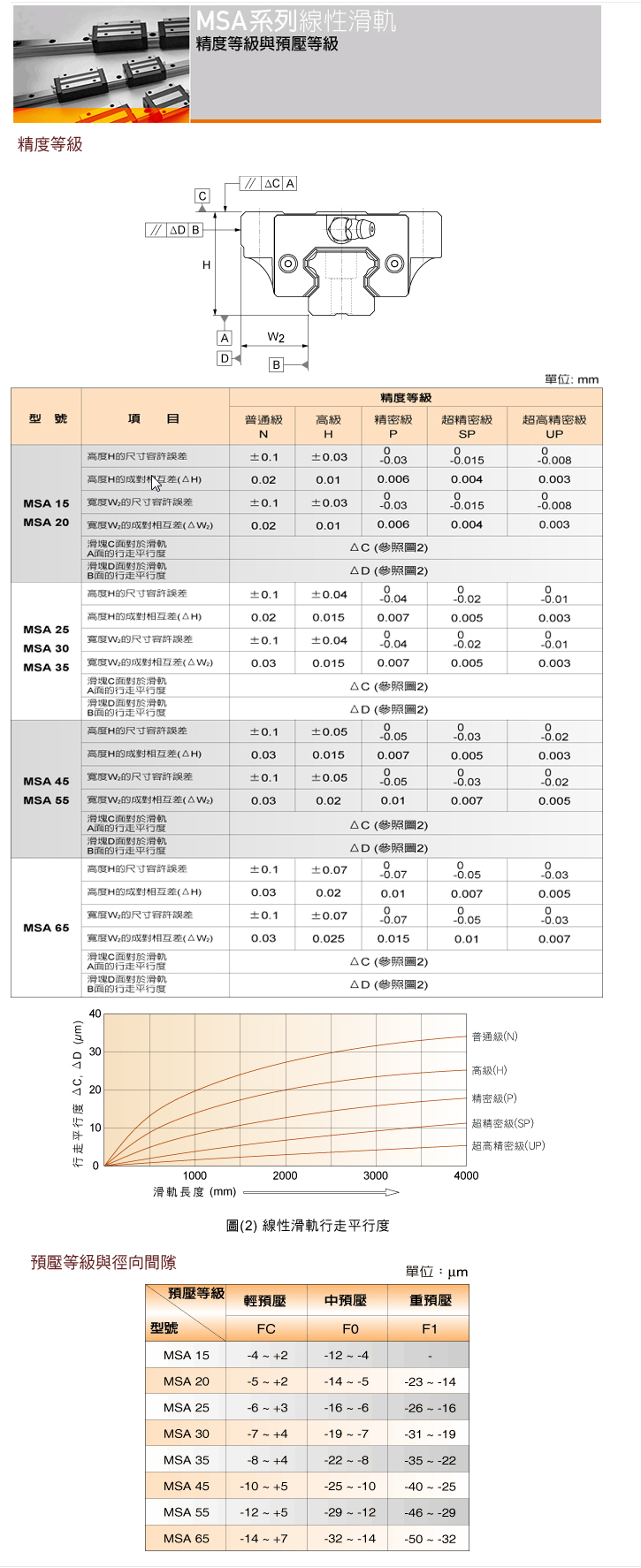 直線導軌 / MSA精密等級與預壓