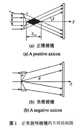 旋轉棱鏡最早由Mcleod提出,具有與(yu) 普通球麵透鏡不同的聚焦特性。圖1示出正負旋轉棱鏡的幾何結構。