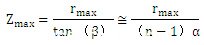 當一束準直後半徑為(wei) r的激光束垂直入射到正錐棱鏡後,所有光線以等偏角β與(yu) z軸相交,形成連續的焦線。當旋轉棱鏡的錐角α較小時,發散角β近似為(wei) (n-1)α。在聚焦區域內(nei) ,出射光線在空間上相互重疊,形成無衍射區域。當錐角較小,不計棱鏡厚度時,最大無衍射範圍可由下式給出: