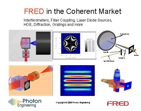 在FRED之中你可以設定出你所需要的光源係統如同調光並進行應用,如雷射係統,全相片,幹涉圖形分析等等,你都可以用FRED這一套軟體(ti) 仿真這樣的光學機構。