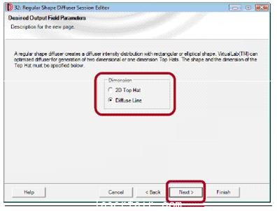 VirtualLAB輔助用戶客戶設計衍射光學元件用於(yu) 產(chan) 生擴散線(diffuse lines)或頂環(Top Hats). 輔助設計步驟同時能使在衍射光學無經驗的光學工程師們(men) 從(cong) 目前的發展中獲益 |