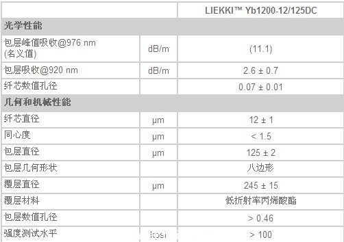 LIEKKI™ Yb1200-12/125 目前隻提供雙包層(Yb1200-12/125DC)光纖。