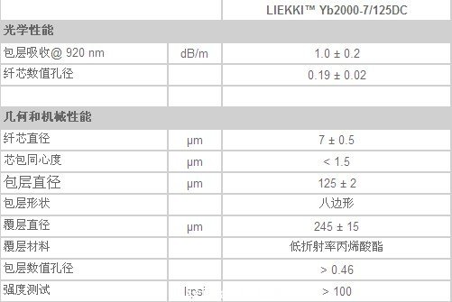 LIEKKI™ Yb2000-7/125光纖目前隻提供雙包層(Yb2000-7/125DC)。