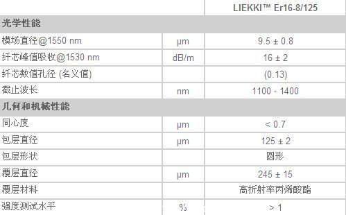 - 適於用980 nm和1480 nm 進行泵浦