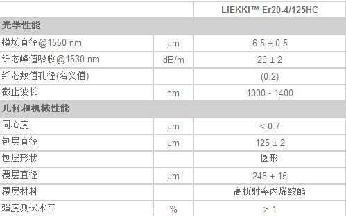 LIEKKI™ Er20-4/125 光纖目前隻有高截止波長(Er20-4/125HC)光纖。