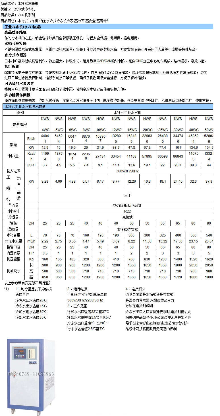 水冷式冷凍機