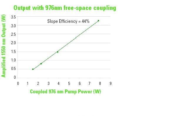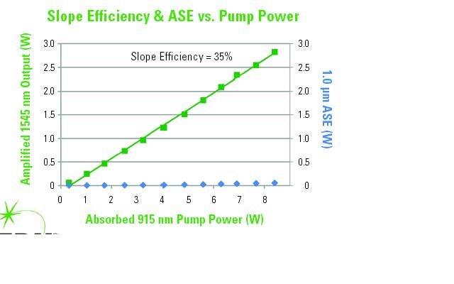 SM-EYDF-6/125-HE光纖在斜率效率方麵遠遠高於(yu) 市場上其他同類產(chan) 品,實驗表明,915nm泵浦情況下,該光纖的斜率效率高達35%,975nm泵浦的斜率效率超過44%,這意味著用戶能夠輕鬆實現超過2W的高功率光纖放大器輸出。