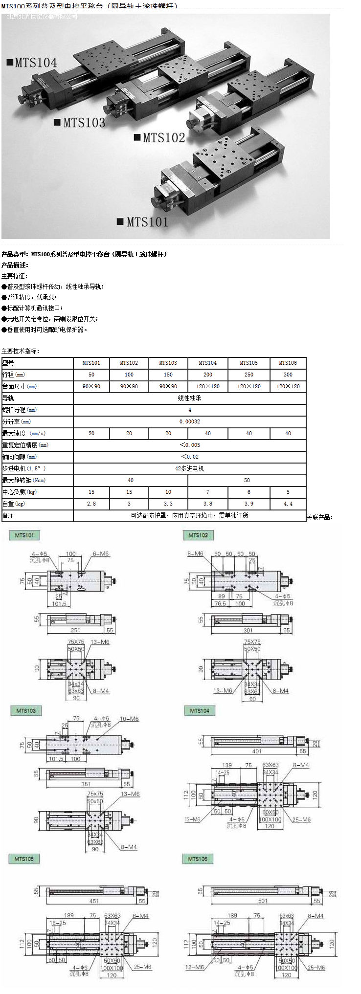 MTS100係列普及型電控平移台(圓導軌+滾珠螺杆)