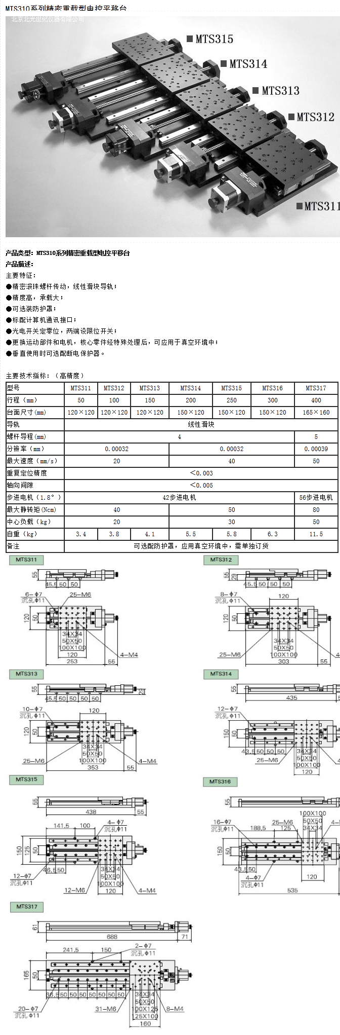 MTS310係列精密重載型電控平移台