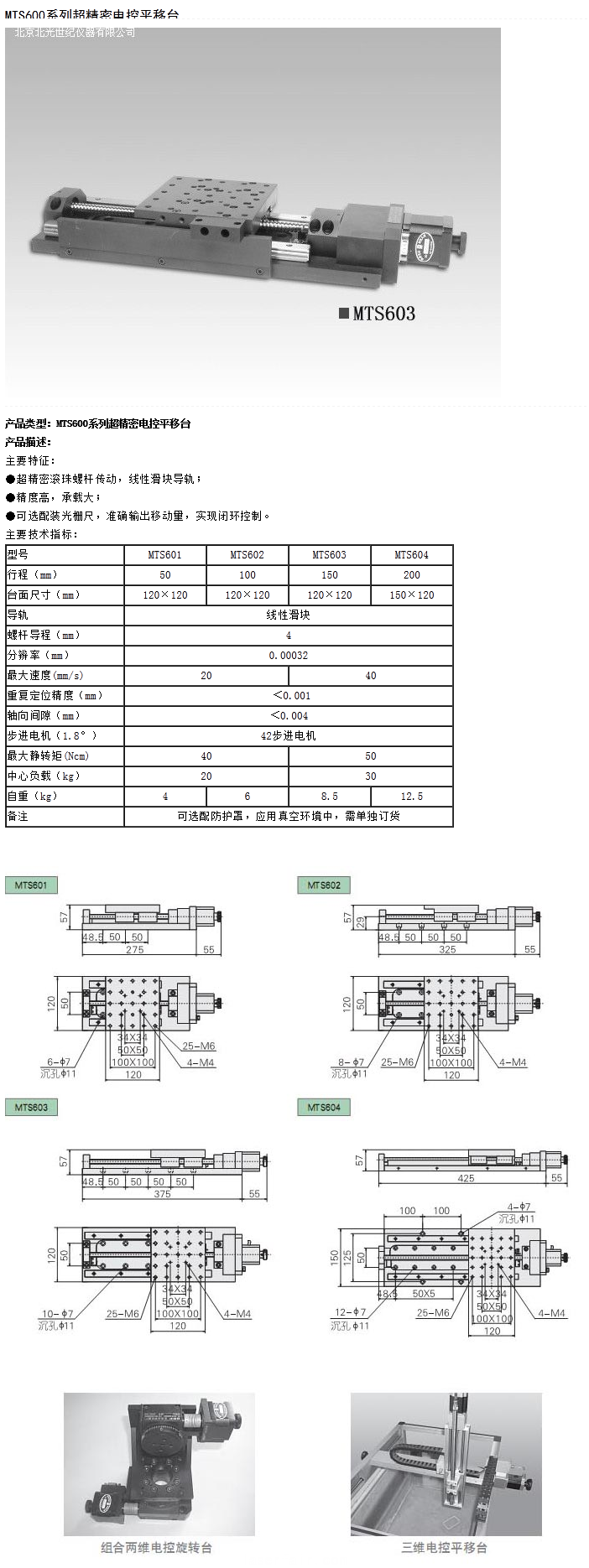 MTS600係列超精密電控平移台