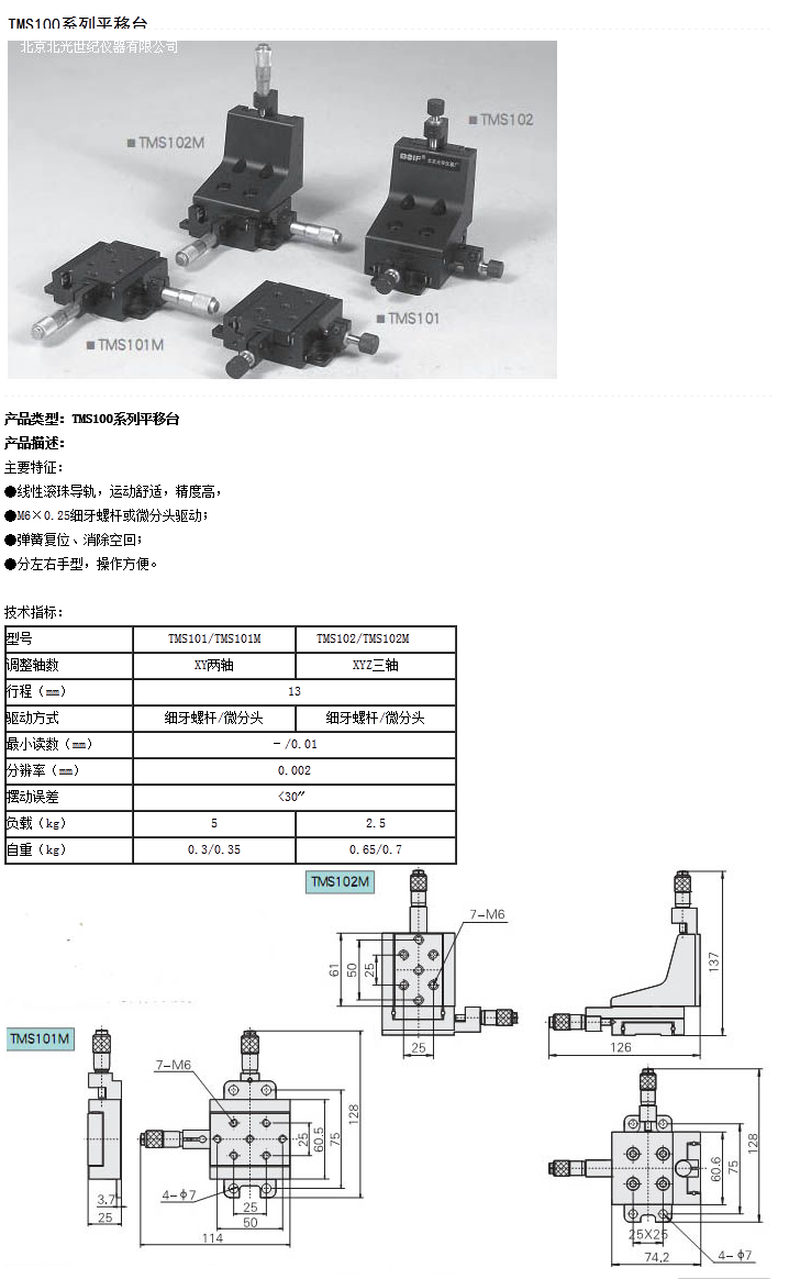 TMS100係列平移台