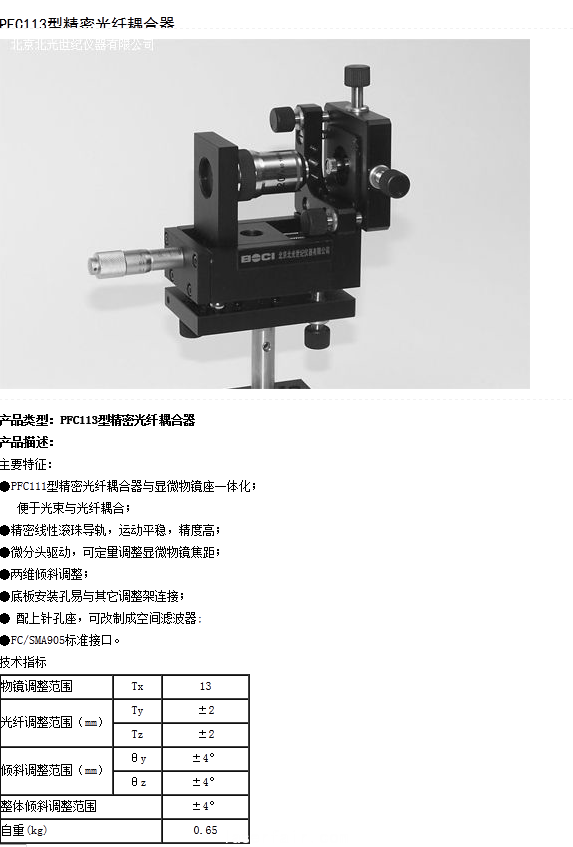 PFC113型精密光纖耦合器