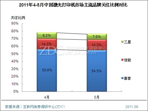 (圖) 2011年4-5月fun88官网平台打印機市場主流品牌關(guan) 注比例對比