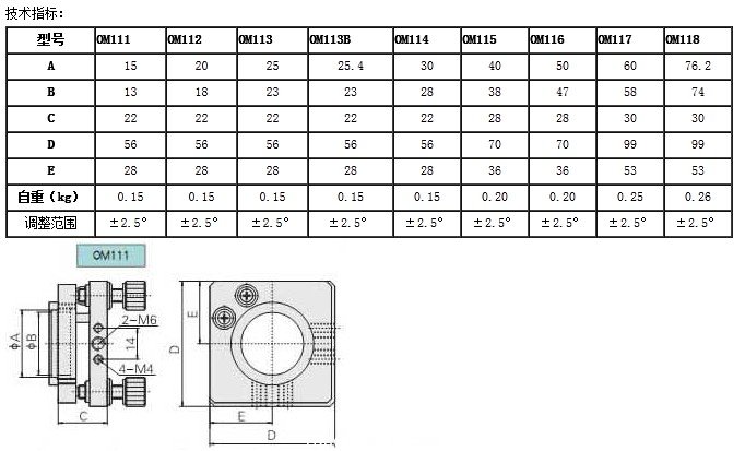 OM110係列反射/分光鏡架(壓圈+碟簧)