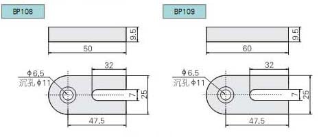 產(chan) 品類型:BP108型、BP109型 型號 A B C 自重(kg) 50 22 37.5 0.025 BP109 60 32 47.5 0.030