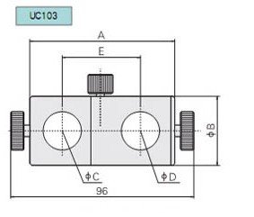 產(chan) 品類型:UC100係列萬(wan) 向杆架 主要特征: ●可將兩(liang) 根接杆按所需角度組合; ●兩(liang) 接杆可360°內(nei) 任意轉動,並隨時鎖定。 技術參數:(C,D為(wei) 能聯接的標準SP接杆直徑) 型號 A B C D E 自重(kg) UC101 60 30 Φ12 Φ12 33 0.15 UC102 77 36 Φ20 Φ12 44 0.2 UC103 77 36 Φ20 Φ20 41 0.2