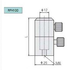 產(chan) 品類型:RPH100係列旋轉杆座 主要特征: ●繞軸線360°旋轉,其它位置參數不變; ●軸向帶V形長槽,鎖緊牢固; ●接杆和旋轉部分均能鎖緊; ●底部M6螺紋孔方便連接; ●配合SP100係列杆架使用。 技術參數: 型號 RPH101 RPH102 RPH103 L 50 76 102 自重(kg) 0.05 0.085 0.15