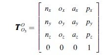 已知機器人末端執行器相對於(yu) 固定參考坐標係O-XYZ 的位姿矩陣:
