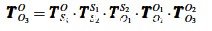 根據求解得到的α、β 和L2,將Ts2O 和TO1O求解出來.得到S2和O1在固定參考坐標係O-XYZ 中的坐標,則得到下式: