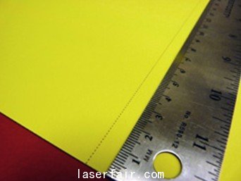 對於(yu) 這一打孔應用,卡紙厚度為(wei) 0.29 mm (0.011”),這尤其適合使用激光器,因為(wei) 它能輕鬆的在卡紙上打出非常一致的孔線,更重要的是打孔速度極快。