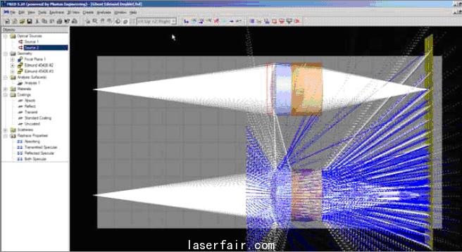 簡單來說,雜散光就是不需要的噪音(光), 它是由光機結構、視場外光源或者不完善的光學零件產(chan) 生的,或者由光學或者照明係統自身的熱輻射引起的。 FRED 善於(yu) 發現這些不需要的噪音,它將運用它的虛擬樣機研究分析能力來幫助我們(men) 消除它。