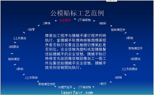 工藝流程是:第一步,機械手將標簽貼在模具上;第二步,將成型設備加工好的盆(桶)從(cong) 設備模腔中取出,放在修邊位置進行多於(yu) 部分的修邊處理。第三步,等修邊處理完畢,將產(chan) 品放在成品堆放處;第四步,在切標機上,機械手取出下一個(ge) 標簽返回等待下一個(ge) 模具。四個(ge) 步驟循環執行。