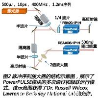 一般的脈衝(chong) 序列放大器係統如圖2所示。這個(ge) 係統是專(zhuan) 為(wei) 放大鎖模、10ps、400Mhz 激光序列而設計的,其宏觀脈衝(chong) 周期為(wei) 1.2ms。整個(ge) 脈衝(chong) 序列的重複率為(wei) 2Hz。放大後的脈衝(chong) 注入到一個(ge) 已經建立好的腔中。經過腔的作用,便能獲得高於(yu) 5MW的峰值功率。激光源可在1ms內(nei) 發出0.5W 功率和峰值功率大約為(wei) 125W的激光。這等同於(yu) 單脈衝(chong) 擁有0.5mJ的能量。