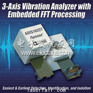 圍繞慣性傳(chuan) 感器而構建的一個(ge) 高集成度器件示例是ADIS16227(見圖2),它是一款完全自治的頻域震動監控器。此類器件可能不提供相對簡單的g/mV輸出,而是提供特定應用分析。在本例中,其嵌入式頻域處理、512點實值FFT和片上存儲(chu) 器能夠識別各震動源並進行歸類,監控其隨時間的變化情況,並根據可編程的閾值做出反應。