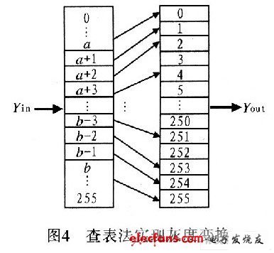 用硬件實現浮點運算效率較低,這裏采用查表的方法,在YCbCr空間進行灰度變換,如圖4所示。
