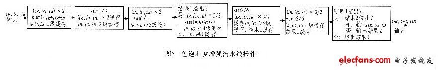 色飽和度調整在RGB空間進行,設計為(wei) 流水線操作,如圖5所示。
