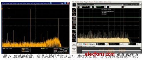 采樣率:因為(wei) 更快的采樣率將帶來更多的波形細節,所以這一因素非常重要。另一方麵,對最快的信號而言,采樣率不足可能導致欠采樣。DPO/DSA73304D提供了一流的采樣率性能。利用交錯技術提供的采樣率性能可將雜散高頻的影響降至最低,該技術采用的是8路采樣/保持方法。參見圖4中的數據,可得出成功和失敗執行的交錯技術的差異。#p#分頁標題#e#