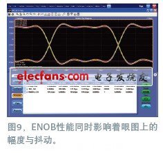 ENOB效果也可以在眼圖上看。ENOB性能同時影響到眼圖的幅度和抖動。5 Gbps的眼圖表示了一個(ge) 與(yu) PCIe(外設部件快速互連)2代或USB(通用串行總線)3.0相關(guan) 的信號碼率(圖9)。