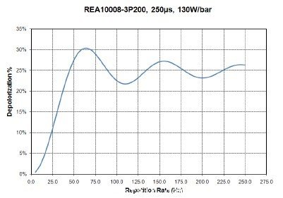 圖1:REA10008-3P200工作在250μs,130A時退極化率與(yu) 重複率的關(guan) 係曲線。